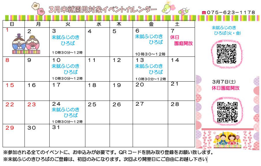 【未就ふじのきひろば】(毎週 火・金)10:30~12:00 申込開始:4/10 9:00~