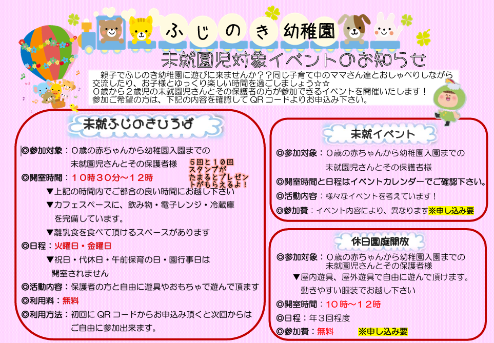 ふじのき幼稚園では未就園児さんを対象とした体験イベント(園内開放)を開催しています【予約制】