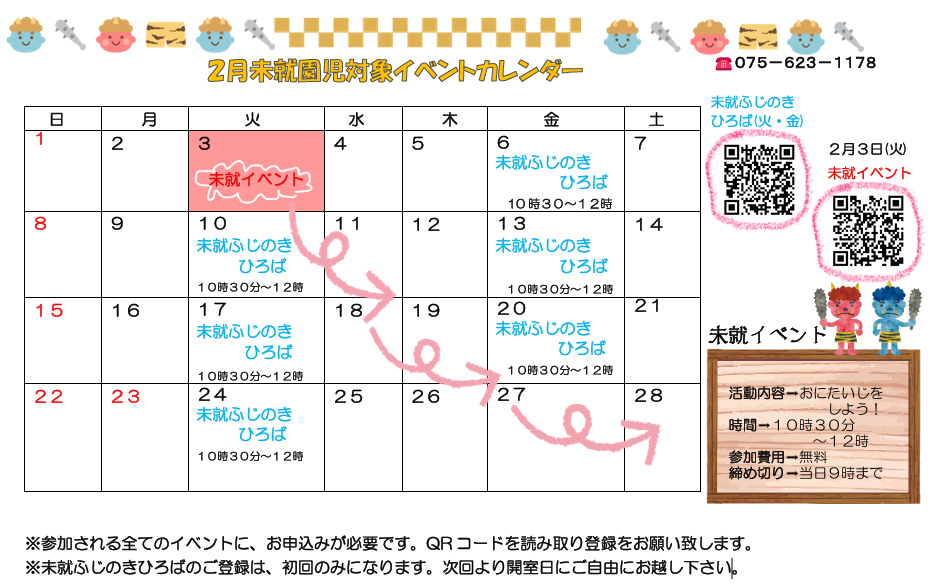 【月1未就イベント】2月3日(火)10:30~☆おにをたいじしよう!☆